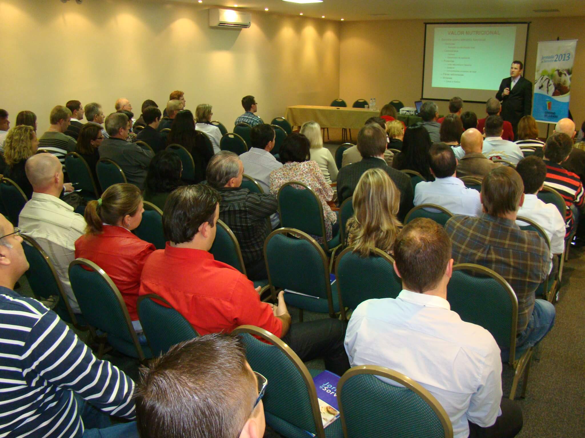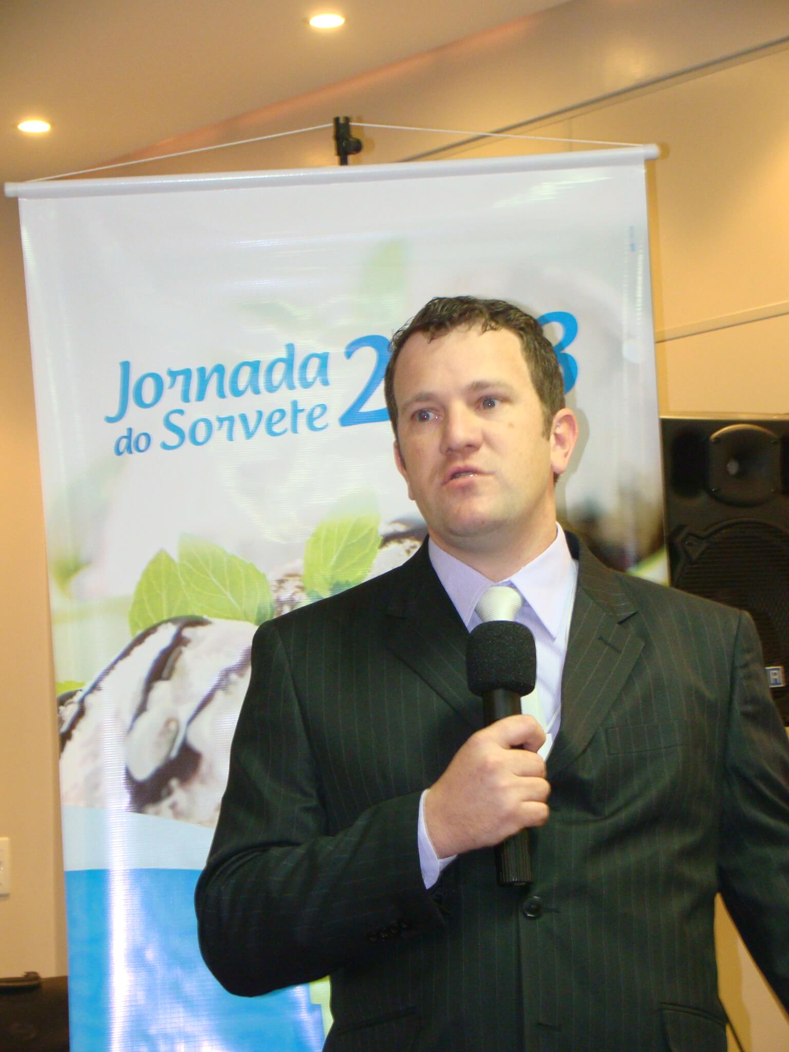Após a assembleia, o químico industrial de Alimentos, Geyson Andrioli, deu prosseguimento às palestras da Jornada do Sorvete. Ele apresentou às cerca de 100 pessoas presentes, formulações básicas e preparo de recheios para sorvete. As dicas dadas por ele se relacionaram a quantidades e ingredientes ideais para a fabricação dos produtos. “O sorvete é um produto com vida de prateleira longa, o que depende de formulações balanceadas e processos adequados”, destacou Andrioli. Segundo o palestrante, a legislação brasileira não faz mais exigências quanto a tipos e respectivas composições de sorvetes. Por isso, os sorveteiros podem usar da criatividade e valorizar seus produtos por meio do sabor e aparência. “Dá para trabalhar o sorvete de diversas formas e fazer deles verdadeiras obras de arte”, ressaltou. Andrioli fez questão de frisar que sorvete não engorda se consumido moderadamente. O que possui significativas calorias são acompanhamentos, a exemplo do brigadeiro.