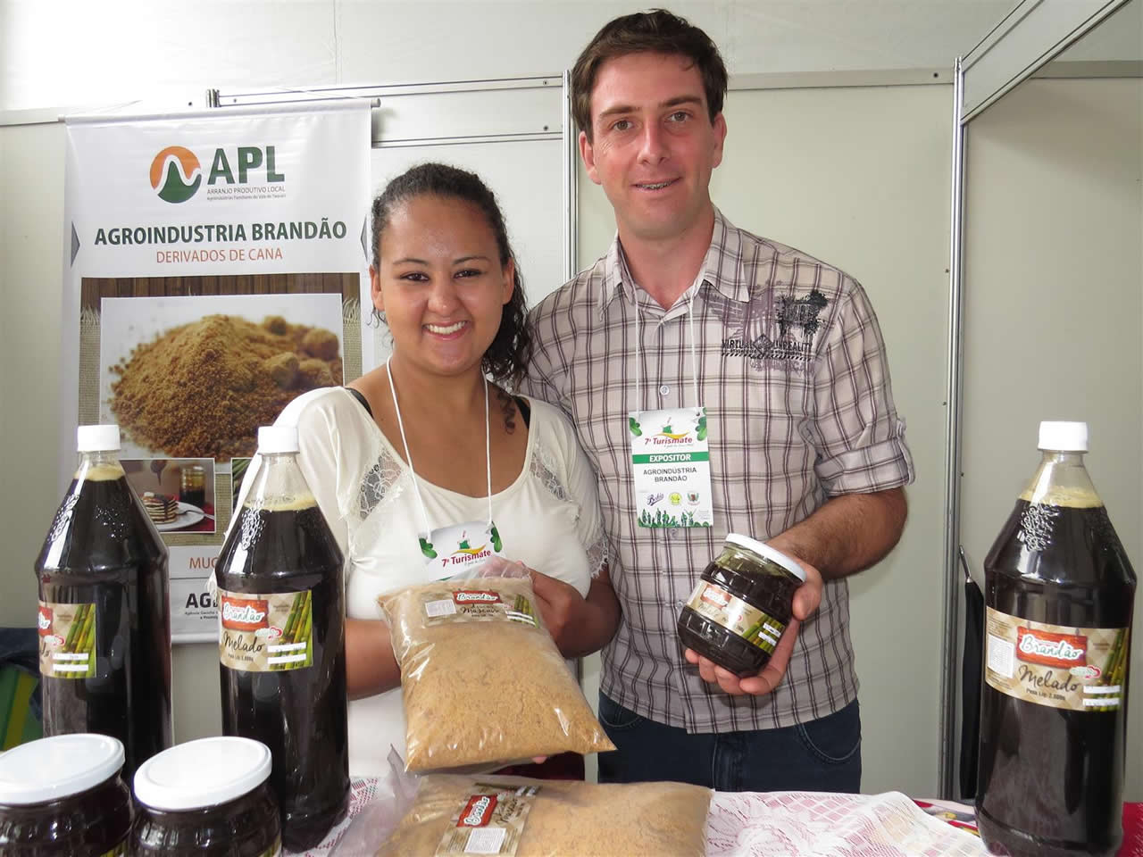 Ao lado da namorada Michely Pedersini, o empreendedor Marciano Brandão, responsável pela Agroindústria Brandão, da localidade de Santa Lúcia, em Muçum, também apresentava seus produtos. No local, os visitantes podiam encontrar açúcar mascavo e melado. Brandão estava satisfeito pelo fato de ter recebido, na última semana, a confirmação da possibilidade de uso do Selo Sabor Gaúcho. “Já estava com a agroindústria inclusa no programa e legalizada há cerca de um ano, mas o selo certamente representará um acréscimo na hora de divulgarmos”, analisa.