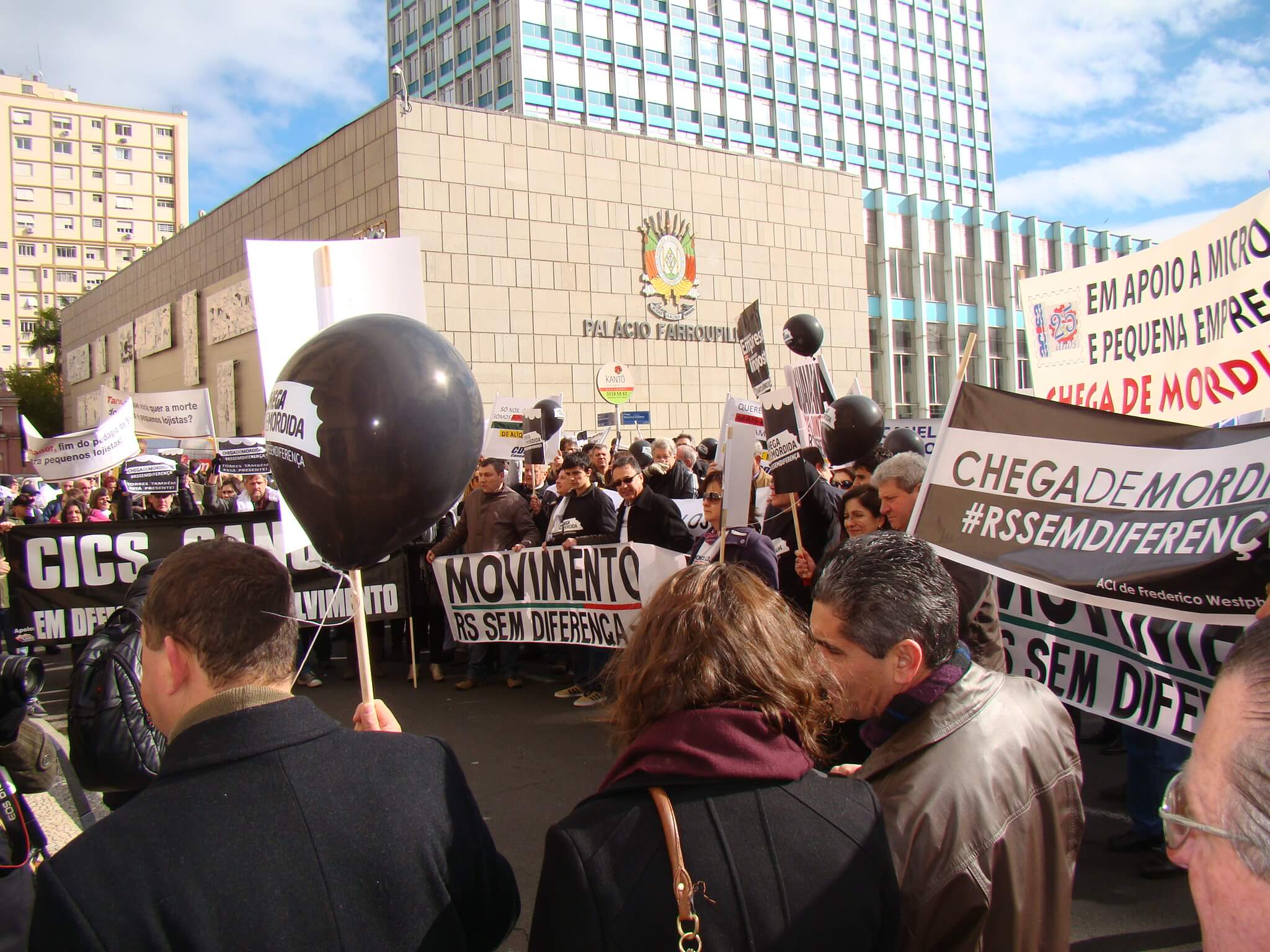 Liderados pela CDL Lajeado, Cacis de Estrela e CIC Teutônia, um grupo de 17 empresários do comércio participou na manhã da última terça-feira, dia 23, do protesto do movimento Chega de Mordida!  O ato reuniu cerca de mil varejistas em frente ao Palácio Piratini, em Porto Alegre, com o objetivo de sensibilizar o governador Tarso Genro para o fim do fim do decreto (nº 46.485 de 2009) que determina a cobrança da diferença de alíquota de 5% sobre as micro e pequenas empresas gaúchas.