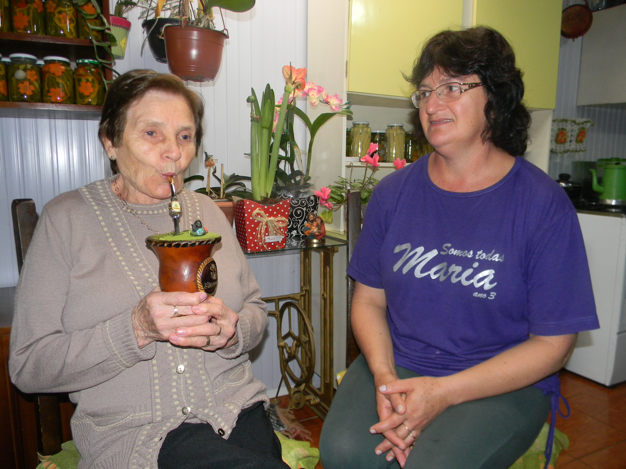 A aposentada Pierina Sabadin e a nora Luci, de Arvorezinha, não abrem mão de uma boa cuia de chimarrão. Seja de manhã ou ao final da tarde. Para elas é a companhia indispensável. “Desde que casei tenho este hábito. Levantava de manhã tomava meu chimarrão e depois ia fazer minhas tarefas. Antes de ficar viúva tinha a companhia do marido, mas mesmo depois que ele faleceu não larguei o chimarrão, continuo compartilhando com a família”, conta Pierina.
