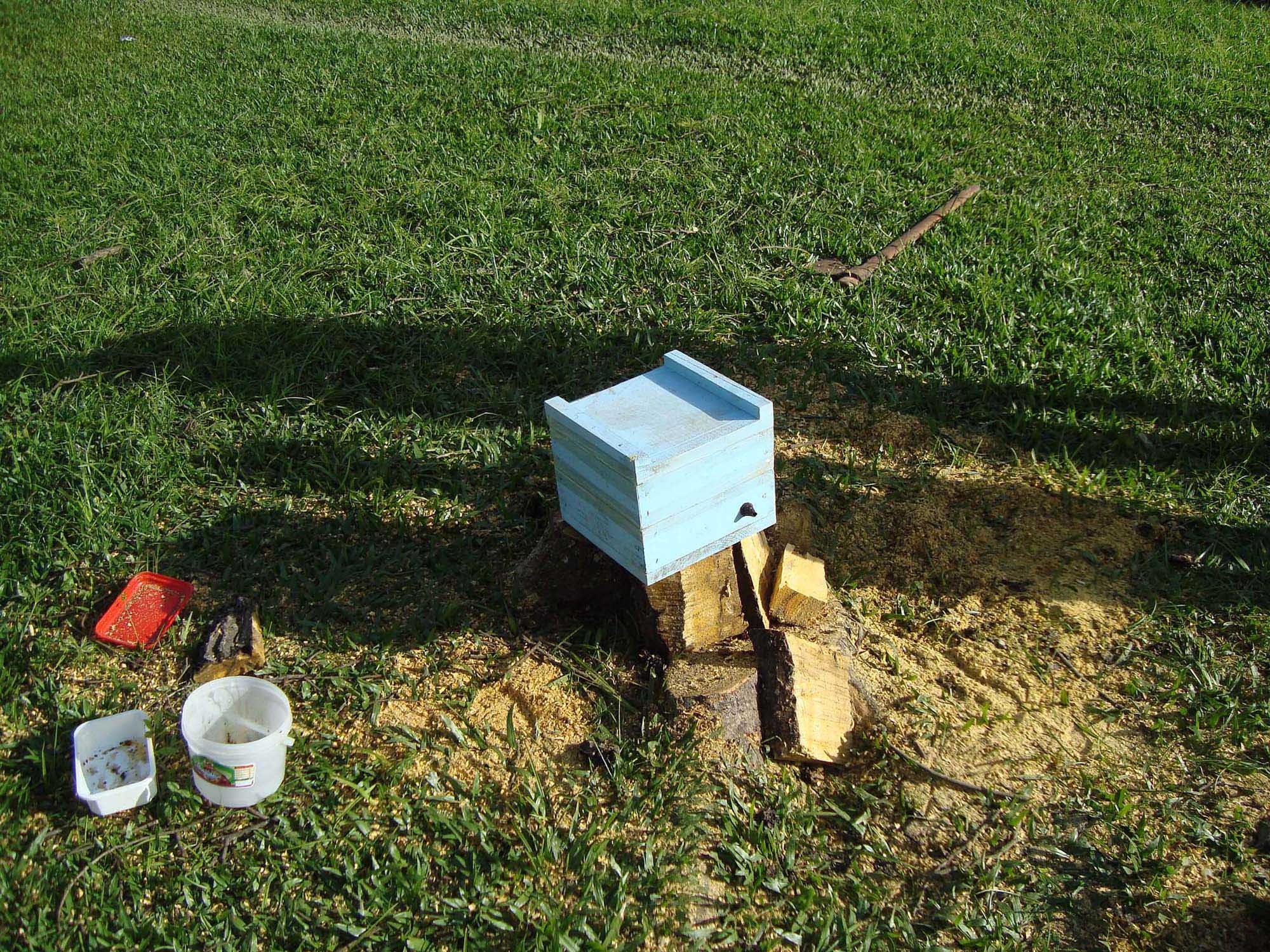 O trabalho já foi iniciado e está dando certo. Várias caixas ou colmeias já foram adquiridas na segunda feira, dia 28, onde o titular da Pasta acompanhou a captura de dois enxames de jataí (mirim alemãozinho). Os mesmos foram retirados de dois troncos de árvores, colocados nas colmeias padrão para esse tipo de abelha sem ferrão.
