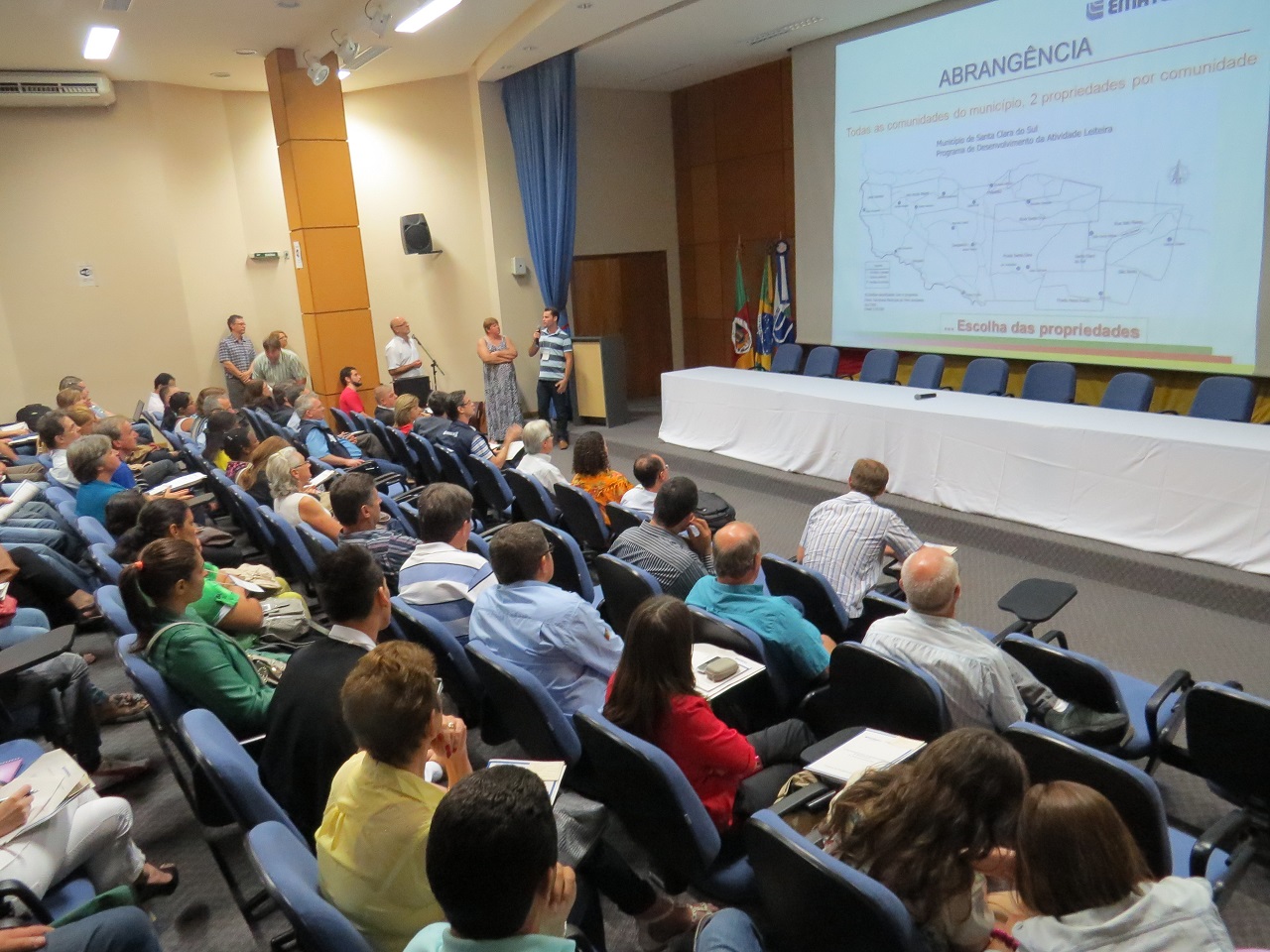 Promovido pela Emater/RS-Ascar, 4º Seminário Estadual de Sistematização de Experiências, contou com a apresentação, no primeiro dia, de 77 trabalhos desenvolvidos pela Instituição no meio rural gaúcho. No segundo dia, além da apresentação do trabalho de Santa Clara do Sul, foram exibidas mais cinco experiências socioassistenciais, no auditório do Escritório Central da Emater/RS-Ascar de Porto Alegre. O evento encerrou com uma mesa redonda com o tema “O que são atividades socioassistenciais no meio rural e a ação da Emater/RS-Ascar”, coordenada pelo diretor técnico da Emater/RS Gervásio Paulus.