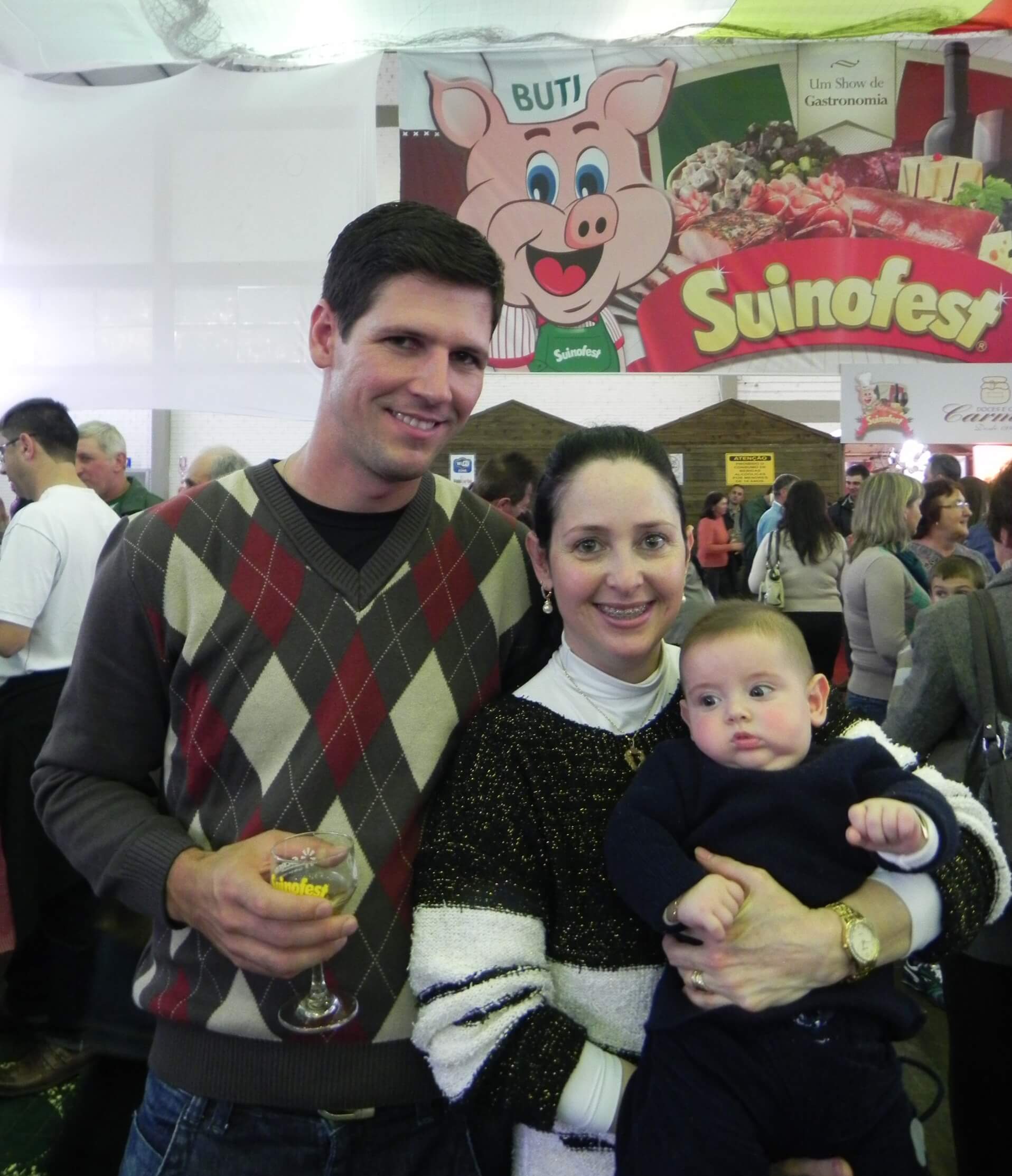 Quem também marcou presença no evento, mesmo no carrinho entre um cochilo e outro, foi o pequeno Bernardo, de apenas cinco meses. Sorridente a atento a todos os detalhes, o bebê acompanhou os pais Eduardo Salami (32) e Veridiana Meneghetti Salami (36). O casal de Coqueiro Baixo é frequentador assíduo da Suinofest há mais de seis anos e diz que sempre participa da festa. “Gostamos para nos distrair, sair de casa. A comida é saborosa e o ambiente é muito alegre”, comenta Veridiana.