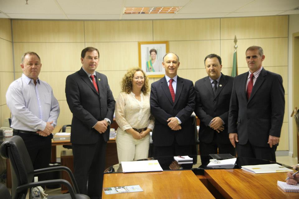 A comitiva esteve com os secretários nacionais de Programa de Desenvolvimento do Turismo, Fabio Mota, e de Políticas do Turismo, Vinicius Lumertz, e com o ministro do Desenvolvimento Agrário, Pepe Vargas, para apresentar e convidar os integrantes do Executivo Federal para o evento, que ocorre em agosto, no Parque do Imigrante, em Lajeado.